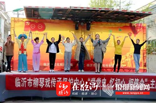 4月9日下午,在郯城县花园镇南涝沟南村中心路宽阔的街道上,舞蹈翩翩,歌声飞扬。临时搭建的舞台前人群聚集,掌声不断。由临沂市文化旅游局主办、临沂市柳琴戏传承保护中心承办的“我们的中国梦-文化进万家”文化惠民演出在这里激情上演。他们用精彩的文艺节目同当地群众一道喜迎建党一百周年。