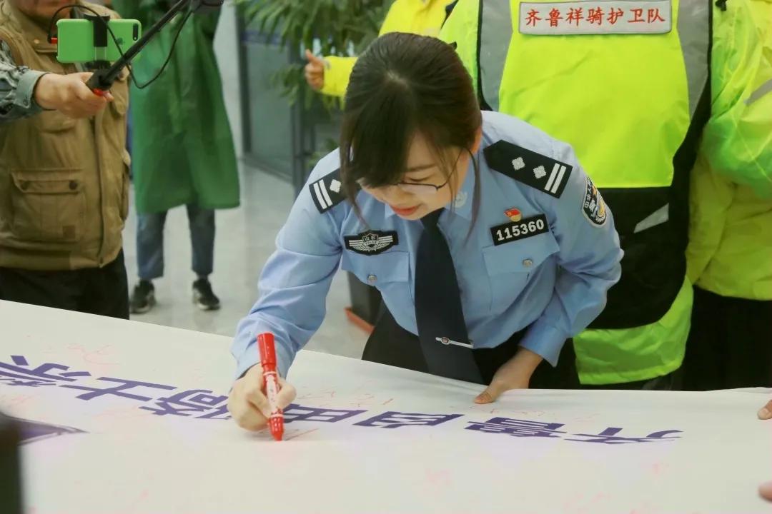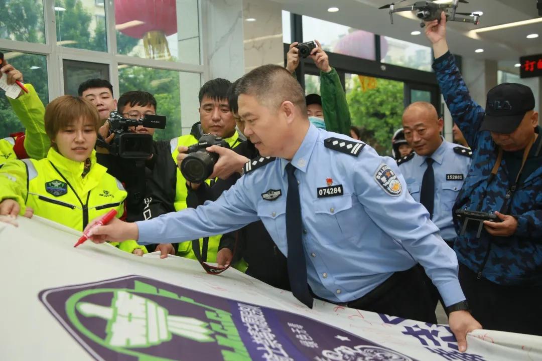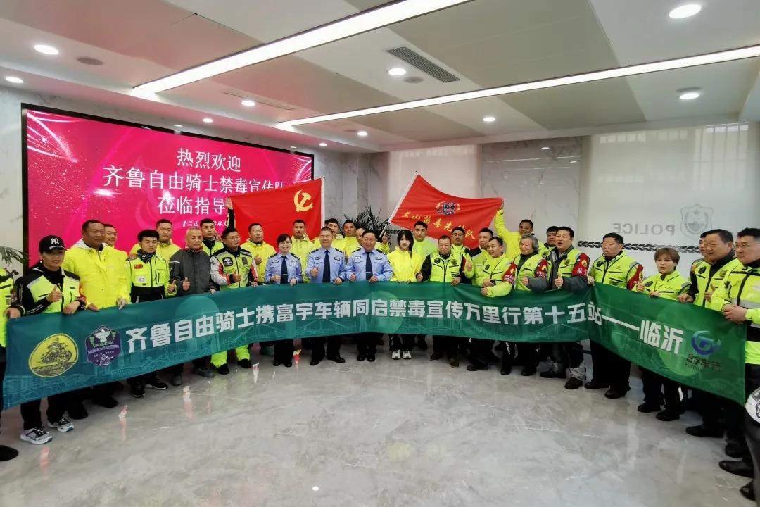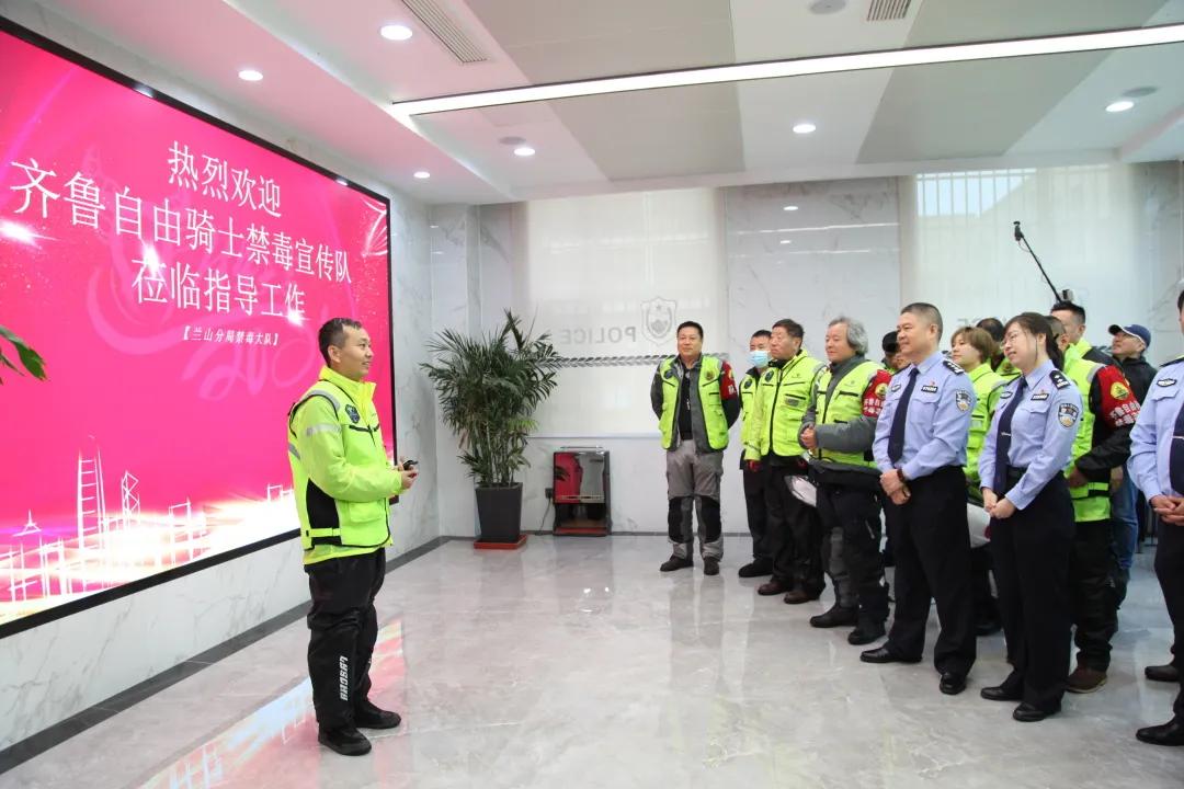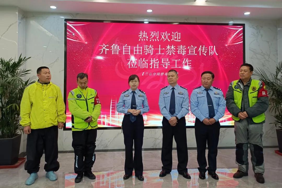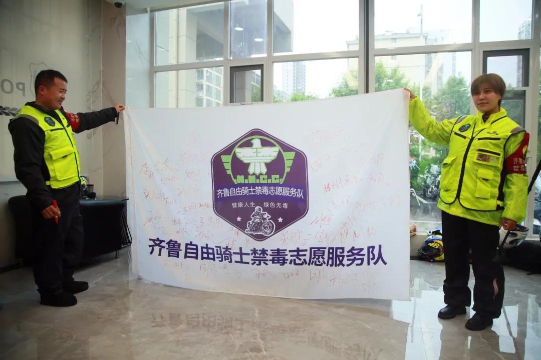 活动中,齐鲁自由骑士禁毒志愿宣传队50余名禁毒志愿者统一佩戴印有禁毒标识的红袖标,骑摩托车沿滨河大道一路骑行,整齐的宣传队伍,响亮的禁毒口号,形成了一道靓丽的禁毒宣传风景线。骑行结束后,骑行禁毒宣传队来到兰山公安分局禁毒大队,和民警辅警们就禁毒公益宣传进行交流,并在禁毒条幅上签名留念。