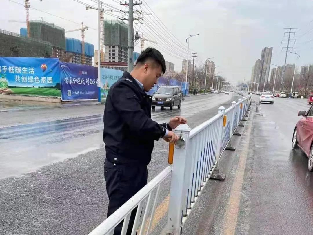 连日来,我市出现降雨、雾天, 为预防和遏制道路交通事故的发生 ,临沂公安交警对事故易发多发路段进行摸底和排查,查看路基路面情况,排查道路设施、标志标线、安全提示、防护设施,理清安全隐患,逐一进行登记,并及时将情况上报有关部门进行处理,确保道路安全畅通。