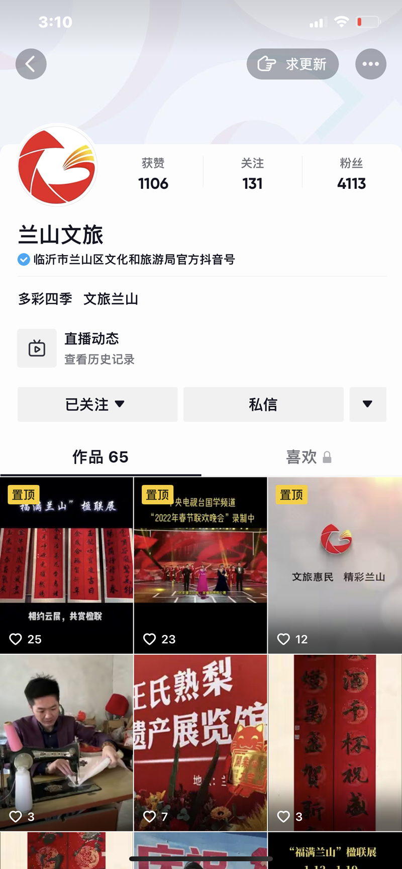 借力新平台,齐心战疫情。疫情防控期间,充分发挥直播平台优势,将原创节目带进直播间,通过镜头为广大群众讲述“抗疫那些事”。结合辖区实际,“兰山文旅直播平台”将持续关注疫情最新动态,做好防疫知识科普,帮助市民维护身心健康,与社会各界一道齐心协力携手同行,全力打赢疫情防控狙击战。