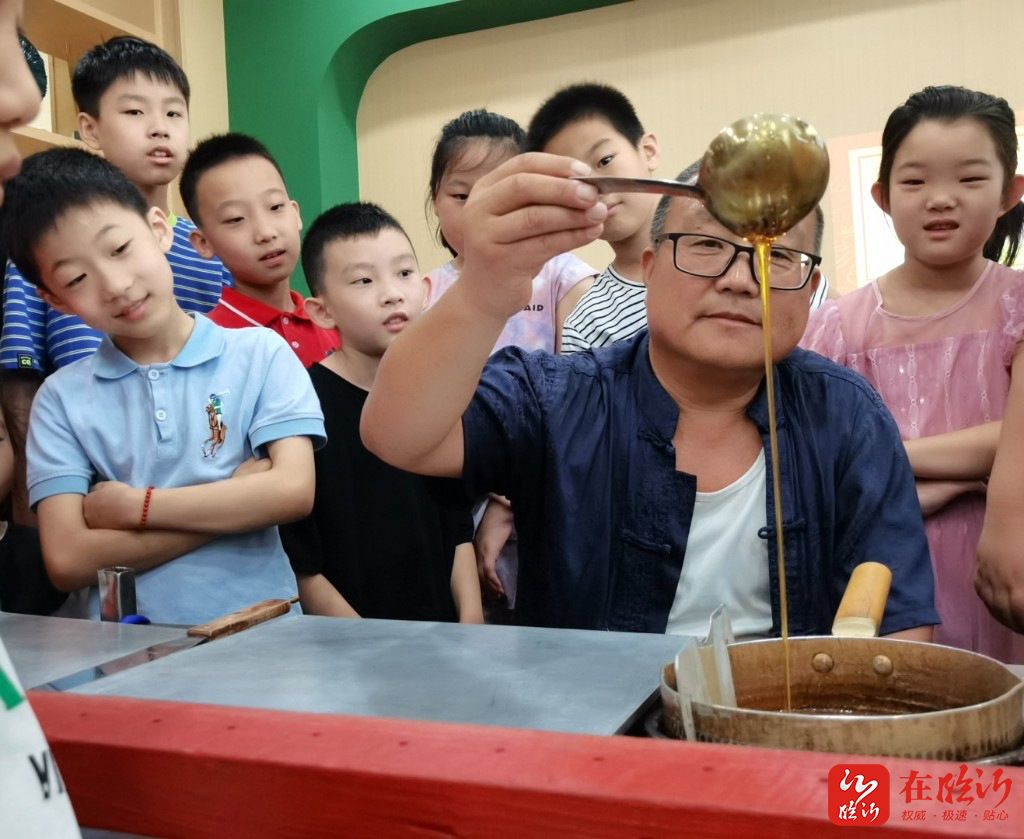 在临沂客户端讯 边学边吃,感受非遗乐趣横生!7月20日上午,在兰山区东苗庄社区金阳花园小区一楼党群服务中心,一堂非遗糖画课正在这里进行,画糖画、品糖画,青少年们直呼“这堂非遗糖画课,太甜了!”