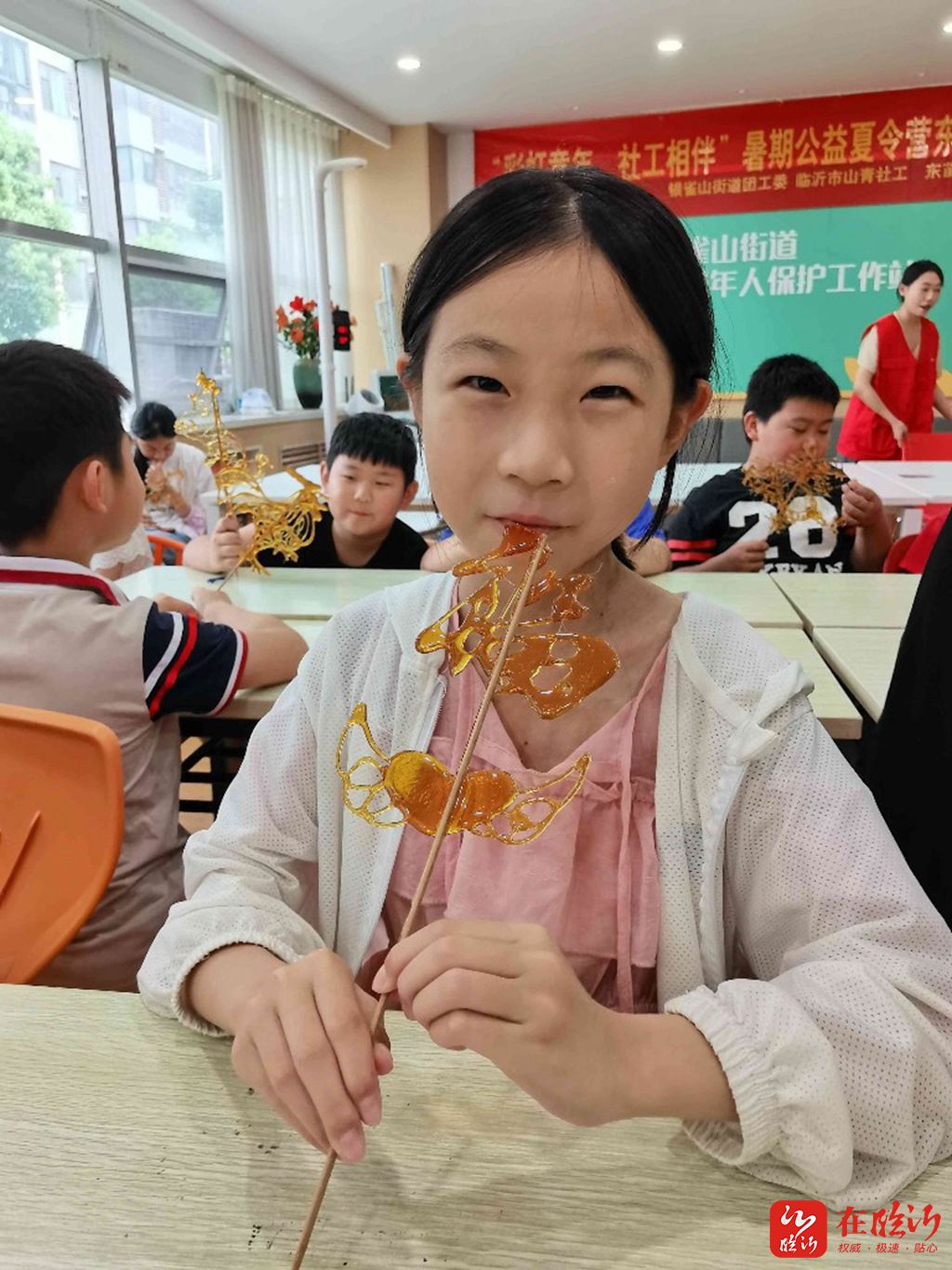 为深入推进非物质文化遗产保护,传承中华民族生生不息的传统文化,增强青少年的文化自信和民族认同感,7月20日上午,由临沂日报报业集团“在临沂”客户端、沂蒙晚报联合“银雀·青力量”项目组社工联开展的“走近非遗之糖画”为主题的体验活动如期开启。